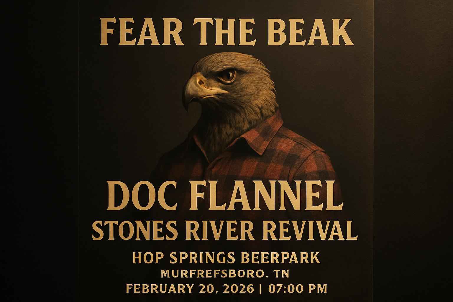 Experience the high-energy Fear The Beak Doc Flannel and Stones River Revival live at Hop Springs Beerpark in Murfreesboro TN on February 20 2026 at 7 PM. Secure exclusive event promo codes from RSVP Event Agency for the best ticket discounts. Hop Springs Beerpark is known for vibrant concerts and craft beer in Rutherford County making it a top music destination for local entertainment seekers.