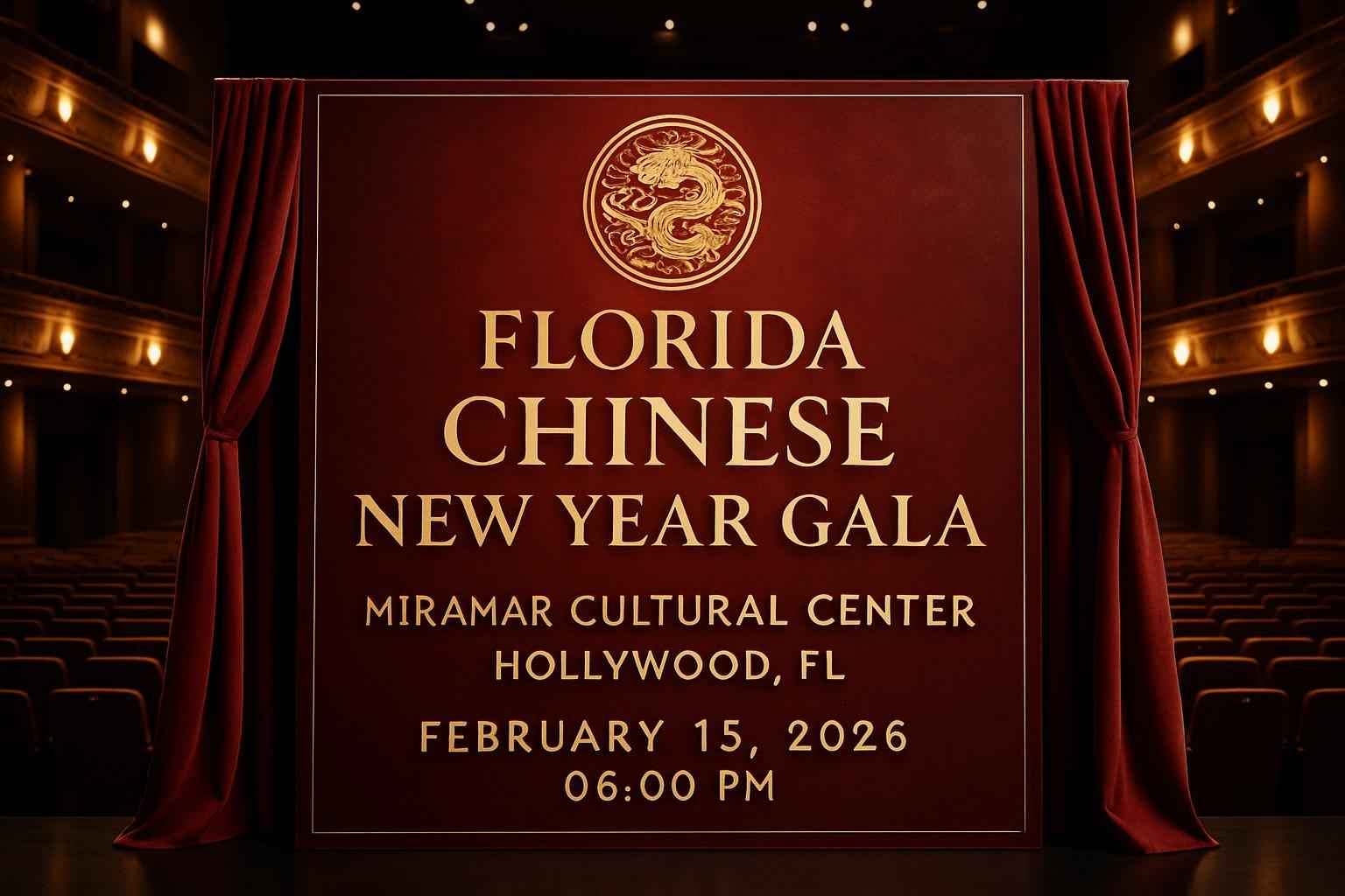 The Florida Chinese New Year Gala is an annual celebration at Miramar Cultural Center in Hollywood FL featuring cultural performances, music, dance, and authentic Chinese cuisine.