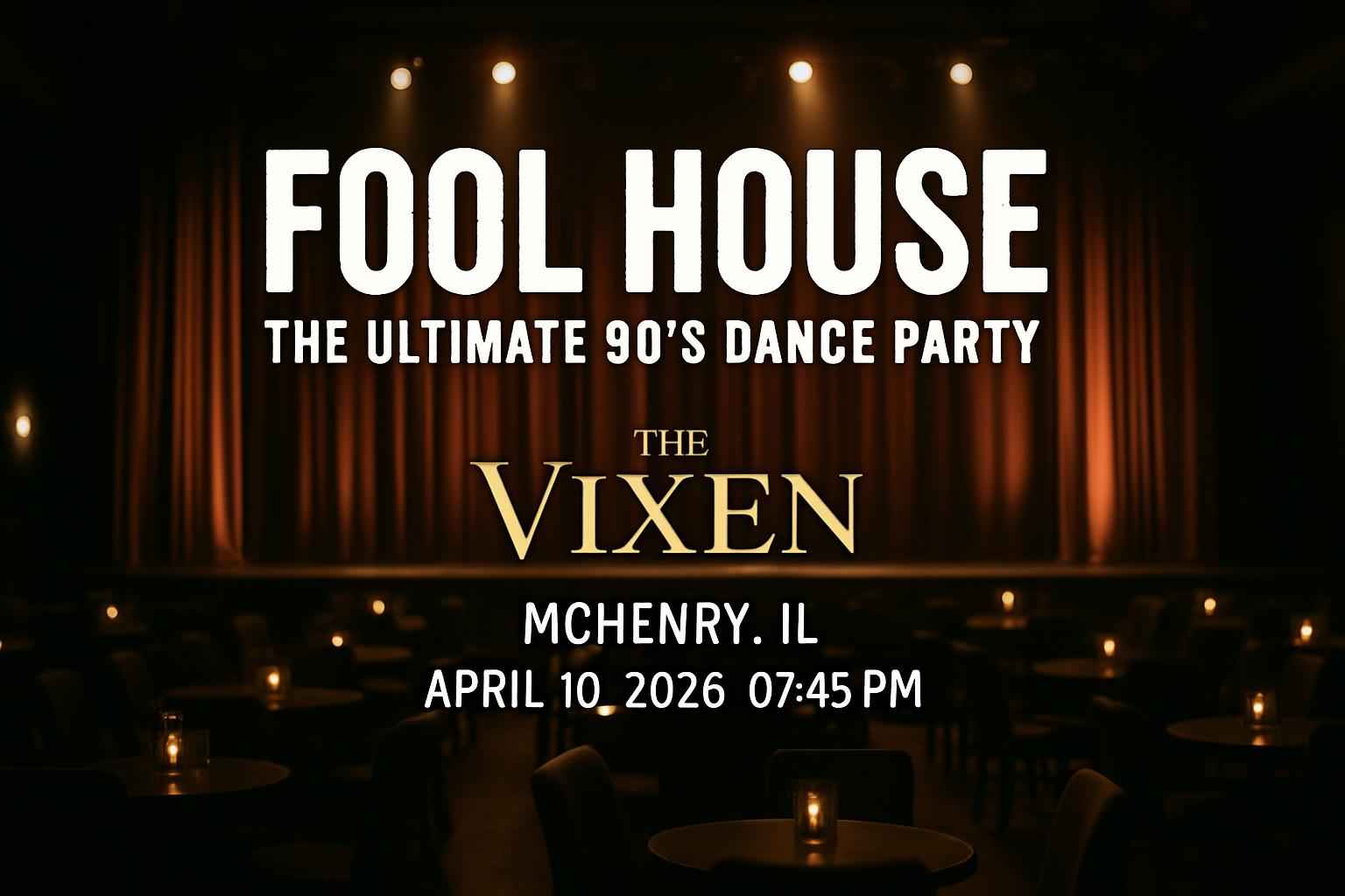 Save on Foolhouse The Ultimate 90s Dance Party tickets at The Vixen in McHenry IL with exclusive RSVP Event Agency promo codes. Use a Foolhouse The Ultimate 90s Dance Party coupon code to access instant ticket discounts and priority entry. Search for Foolhouse The Ultimate 90s Dance Party discount codes or The Vixen promo codes to find the best deals for April 10 2026. Act now to secure your spot and pay less for a top-rated 90s dance experience.