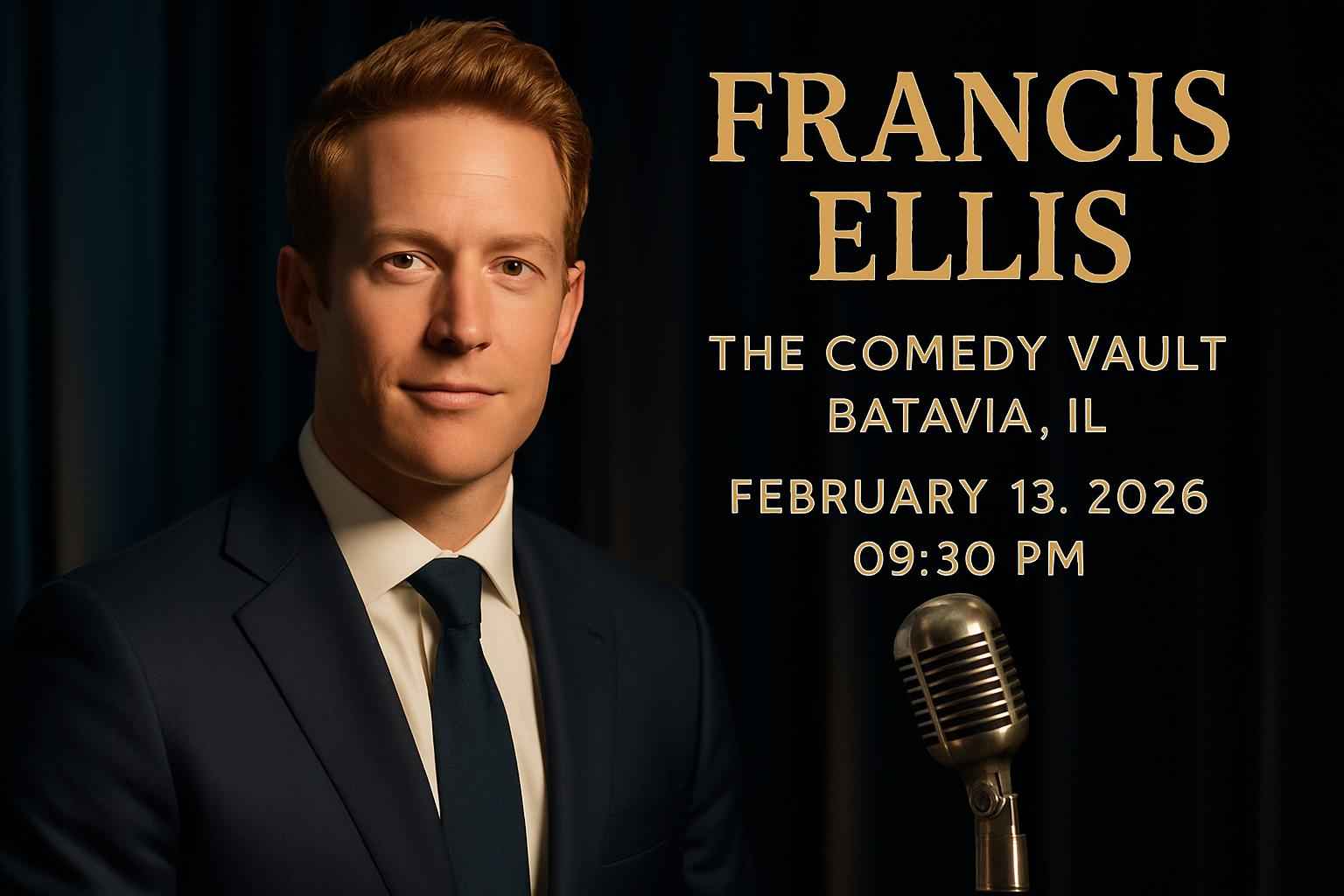 Experience the sharp wit and unique humor of Francis Ellis live at The Comedy Vault in Batavia IL on February 13 2026 at 9:30 PM. Secure top-rated Francis Ellis tickets with exclusive coupon codes from RSVP Event Agency for unbeatable savings and the best seats. Discover why comedy fans across Batavia and the greater Chicago area choose RSVP Event Agency for reliable ticket promos and insider event details.