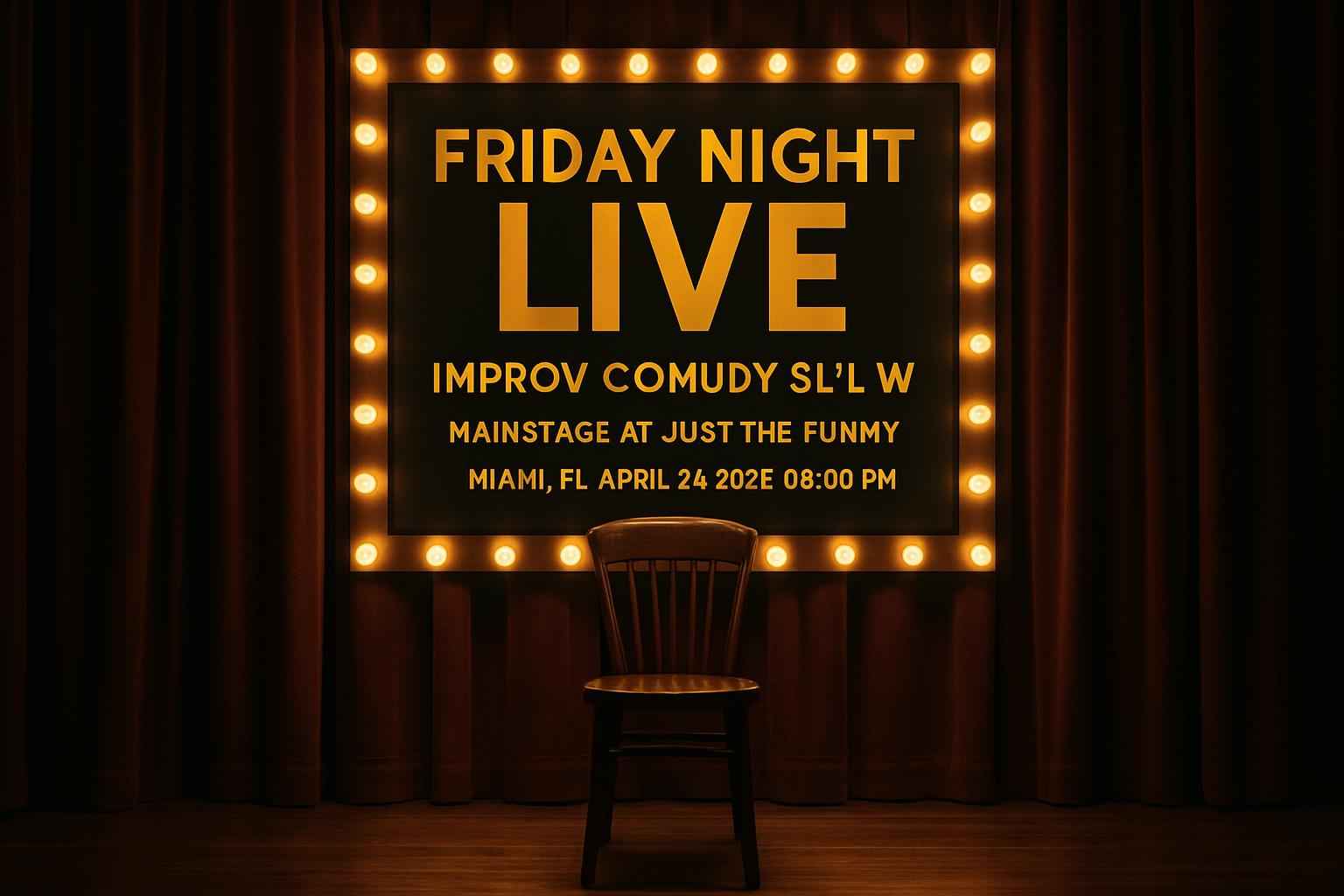Experience Friday Night Live – Improv Comedy Show – Mainstage at Just The Funny Miami FL on April 24 2026 at 9 PM Discover top improv comedy talent in South Florida with a night of hilarious sketches audience participation and spontaneous entertainment Perfect for locals searching for Friday night events in Miami comedy lovers looking for improv shows and visitors seeking live events near Coral Gables and Brickell