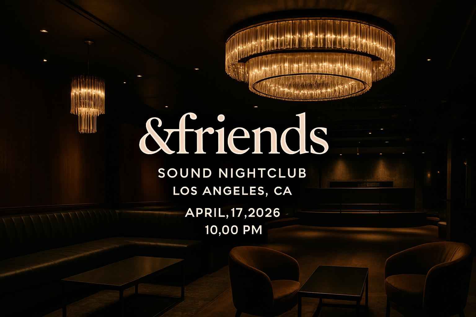 Experience one of Los Angeles top nightlife events with &friends at Sound Nightclub on April 17 2026 at 10:00 PM. This exclusive event in the heart of Hollywood brings together music lovers and partygoers for an unforgettable night of electronic beats and immersive club ambiance. Secure your spot with trusted RSVP Event Agency promo codes and enjoy immediate savings on tickets for &friends at Sound Nightclub.