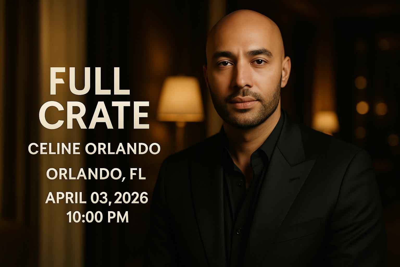Full Crate brings his signature blend of R&B hip hop and electronic beats to Celine Orlando one of downtown Orlando’s top nightlife venues. Doors open at 10:00 PM on Friday April 3 2026 with live sets and immersive lighting. This event attracts music fans from Orlando Kissimmee Winter Park and Lake Buena Vista. Enjoy a vibrant crowd and top-tier audio in a dynamic atmosphere. Early ticket purchase is recommended for best availability and price.
