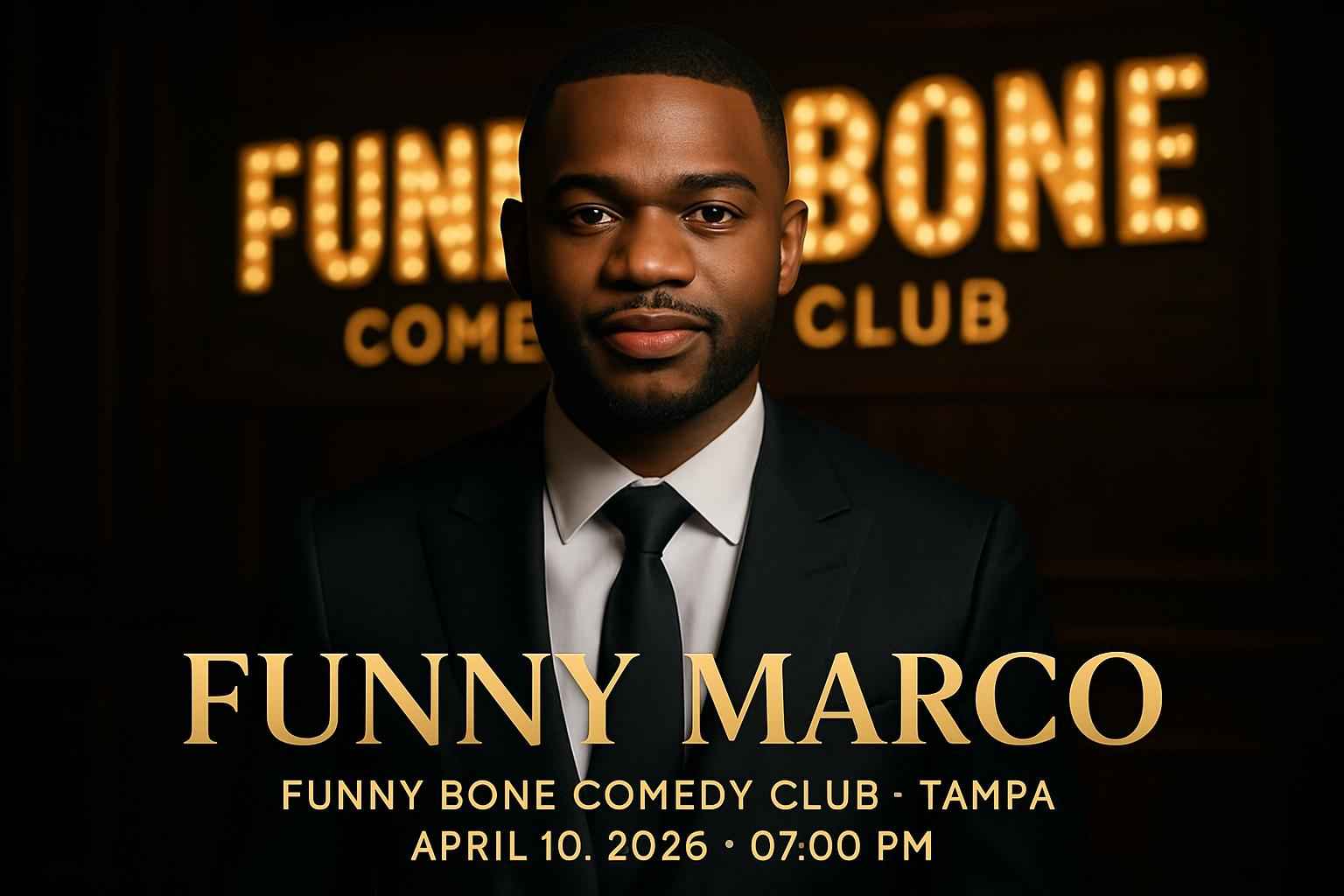 Funny Marco brings his viral comedy and unique stage presence to Funny Bone Comedy Club Tampa for one night only. This April 10 2026 event promises original material and interactive crowd moments making it a must-see for comedy fans across Tampa Bay. Use Tampa comedy event keywords to find the best ticket deals and show information.