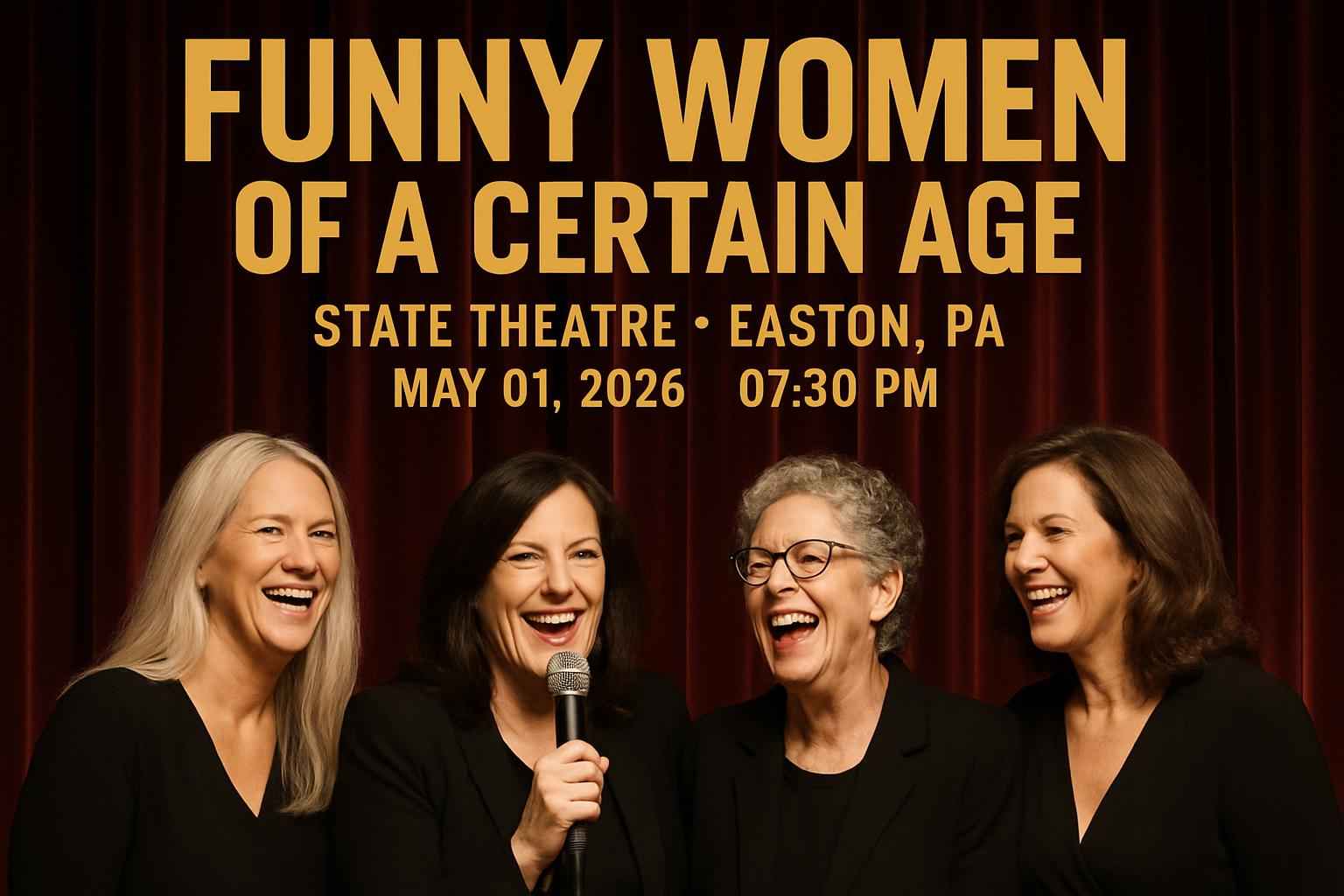 Experience an unforgettable night of comedy with Funny Women Of A Certain Age at the historic State Theatre in Easton PA on May 01 2026 at 0730 PM. This event brings together the sharpest female comedians celebrated for their honest witty performances. Secure your tickets through RSVP Event Agency and unlock exclusive coupon codes for maximum savings. Elevate your local entertainment experience in Easton and discover why this show is a must-see for comedy fans.