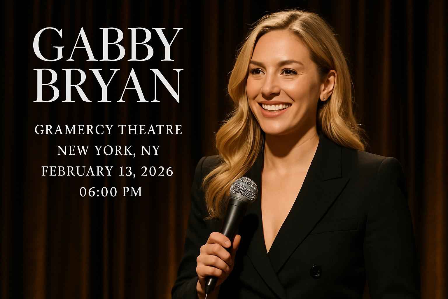 Gabby Bryan brings her acclaimed stand-up show to Gramercy Theatre for a one-night-only performance. Attendees enjoy an intimate comedy experience with premium acoustics in the heart of Manhattan. The venue is located at 127 East 23rd Street New York NY close to major transit and popular dining spots. Doors open at 5:00 PM and the show starts promptly at 6:00 PM.