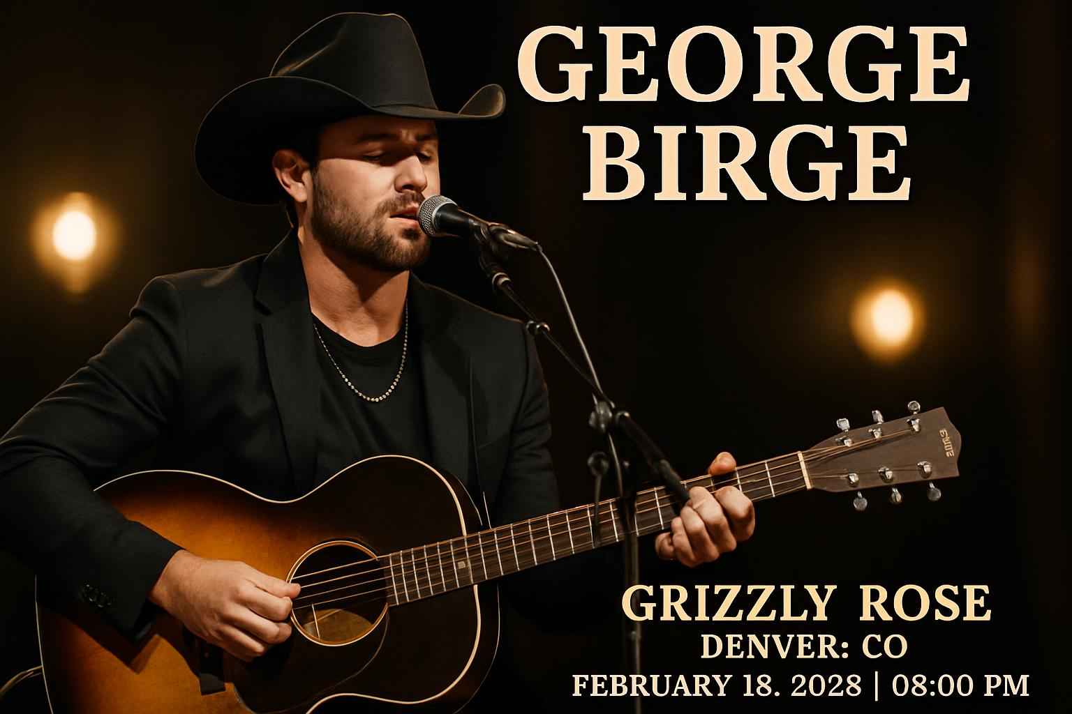 Experience George Birge live at Grizzly Rose Denver on February 13, 2026, at 8 PM. RSVP Event Agency offers exclusive promo codes for up to 20% off tickets, including VIP and group rates. Enjoy free parking, accessible venue, and authentic country vibes. Secure your seats early online with verified discounts for the best concert experience.