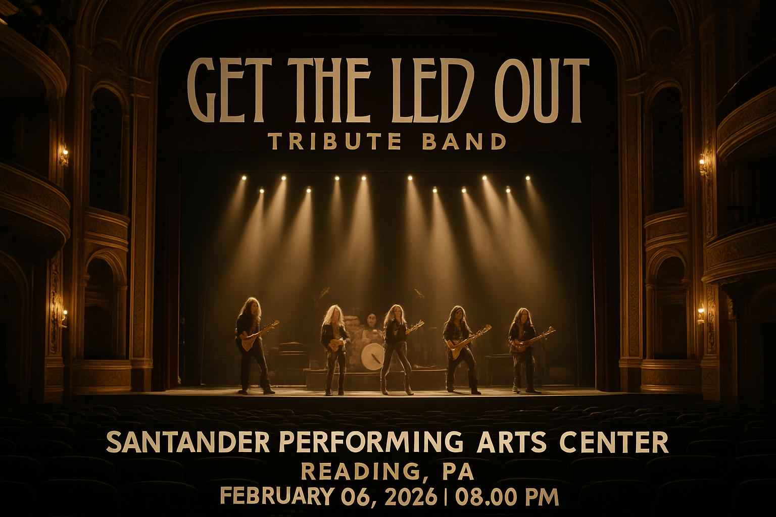 Experience Get The Led Out – Tribute Band live at Santander Performing Arts Center, Reading PA on February 6, 2026, at 8 PM. Enjoy authentic Led Zeppelin hits with world-class musicianship. Use exclusive RSVP Event Agency promo codes for up to 15% off tickets and reserved seating. Arrive early for parking and ADA-accessible venue amenities.