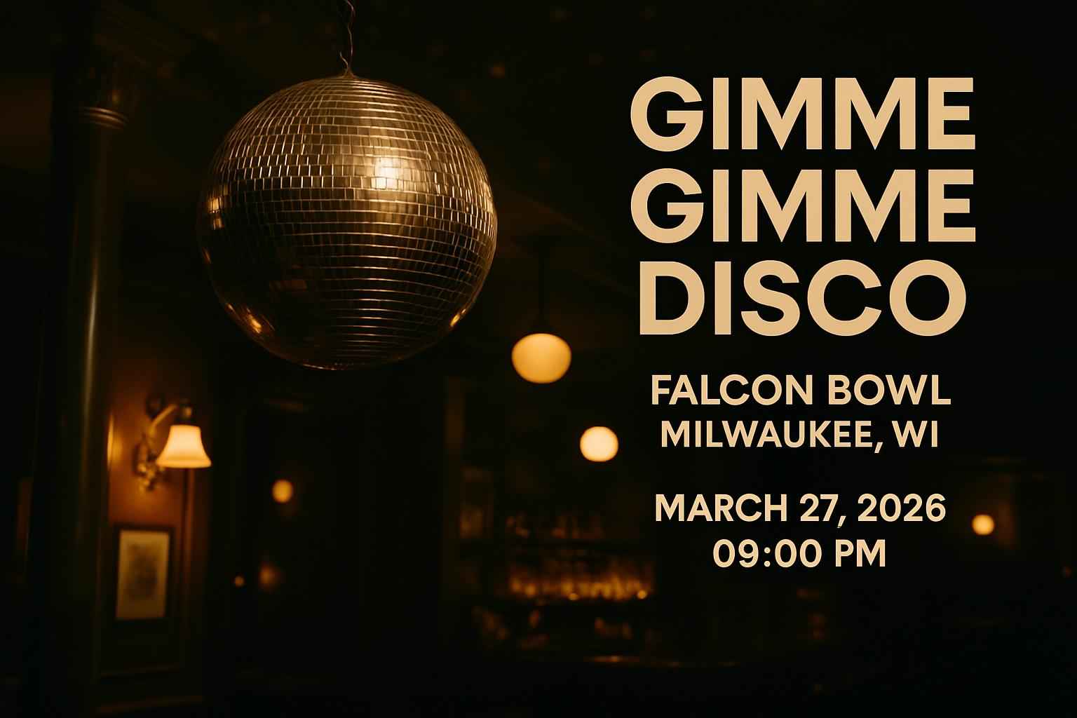 Gimme Gimme Disco at Falcon Bowl is a themed dance party celebrating disco and ABBA music in Milwaukee WI with top DJs and a lively crowd.