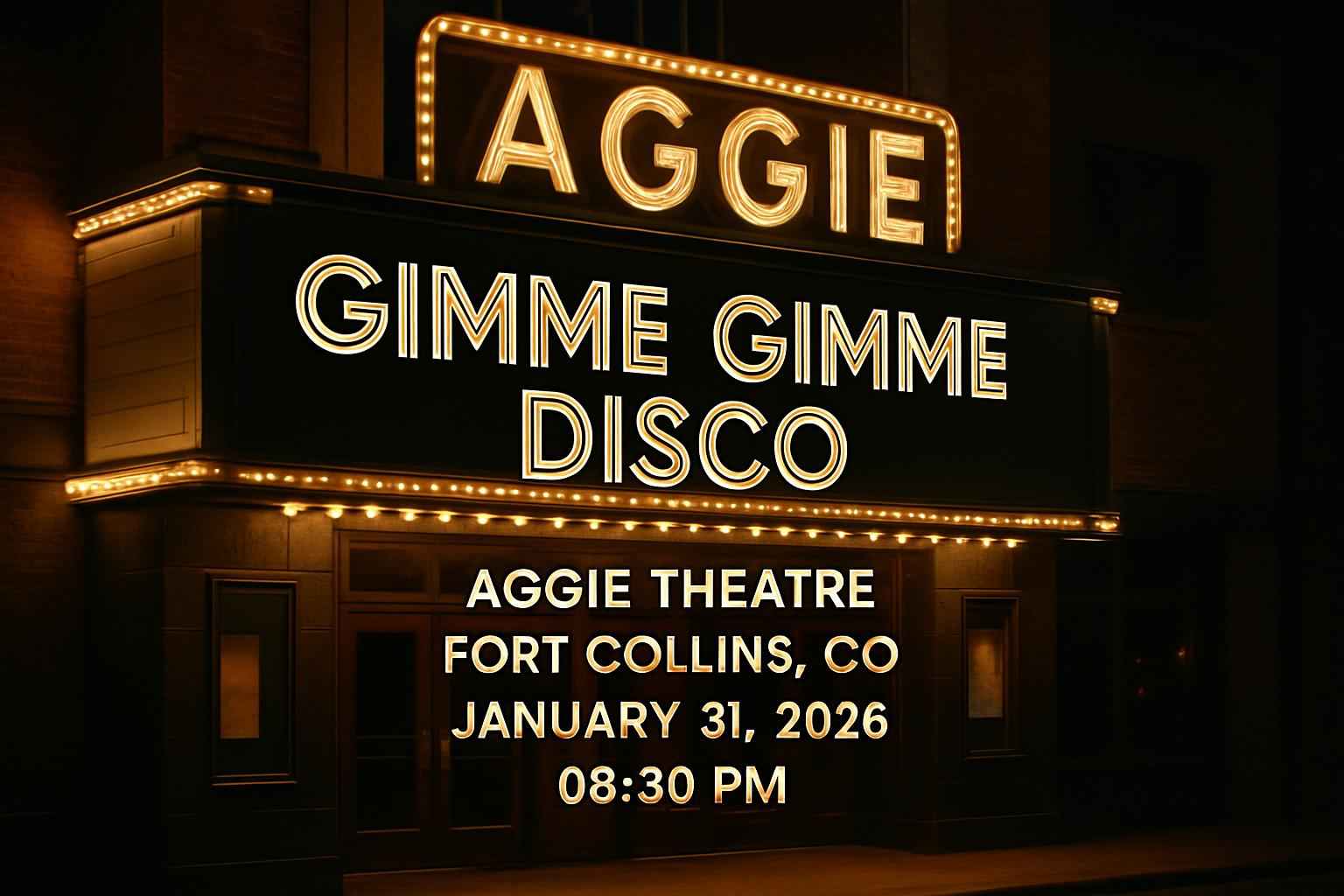 Experience the ultimate disco night at Gimme Gimme Disco – Aggie Theatre, Fort Collins, CO on January 31, 2026 at 8:30 PM. This ABBA-inspired dance party draws crowds across Colorado who want to relive the disco era with the best hits and themed entertainment. RSVP Event Agency delivers exclusive coupon codes and verified event details so you unlock savings and enjoy the dance floor in Fort Collins.