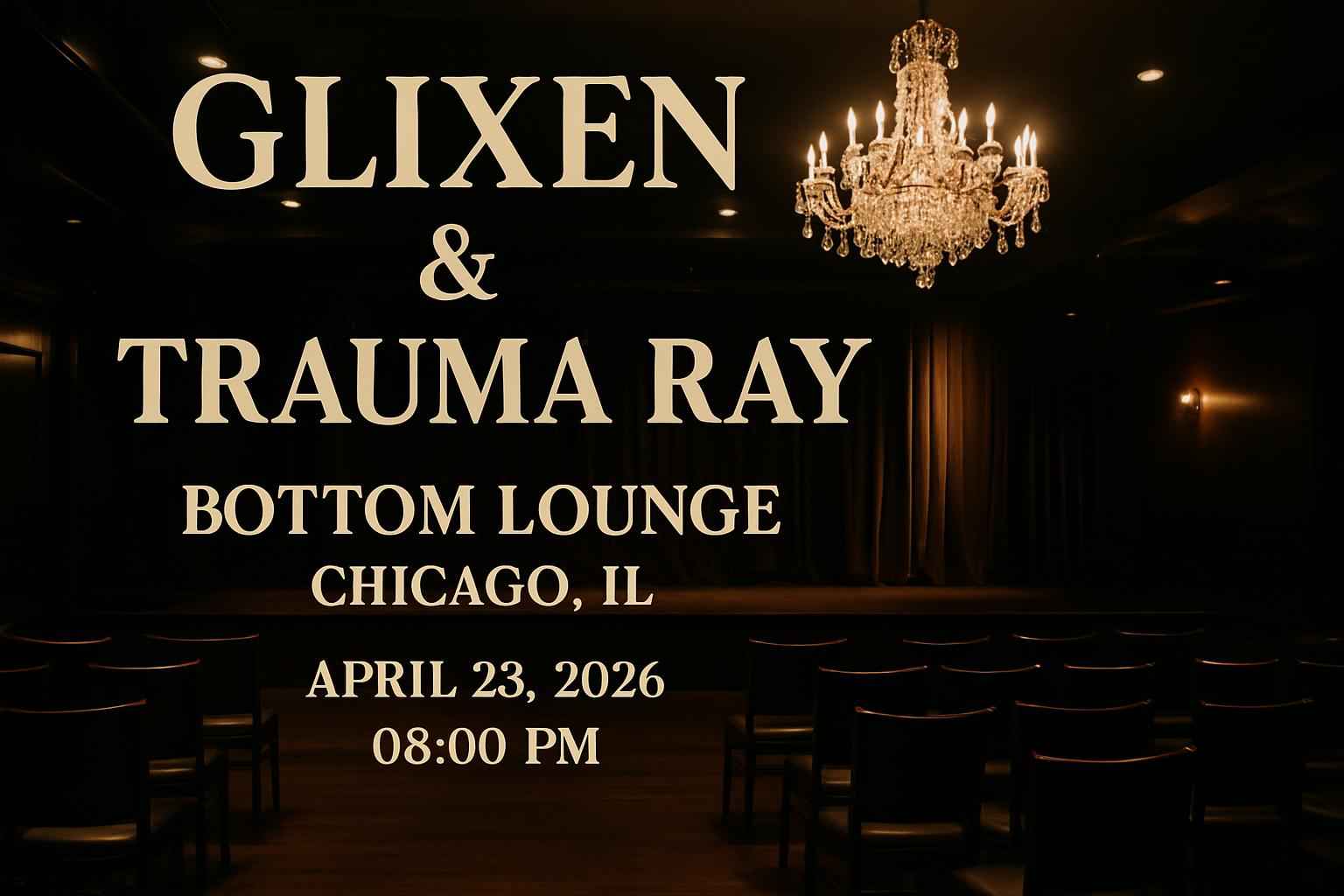 Expect a high-energy setlist blending Glixen and Trauma Rays signature tracks with new material exclusive to their 2026 Chicago tour. Special guest performances and unique live collaborations are common at Bottom Lounge shows. RSVP Event Agency keeps you updated on setlist changes and surprise guests for April 28 2026.