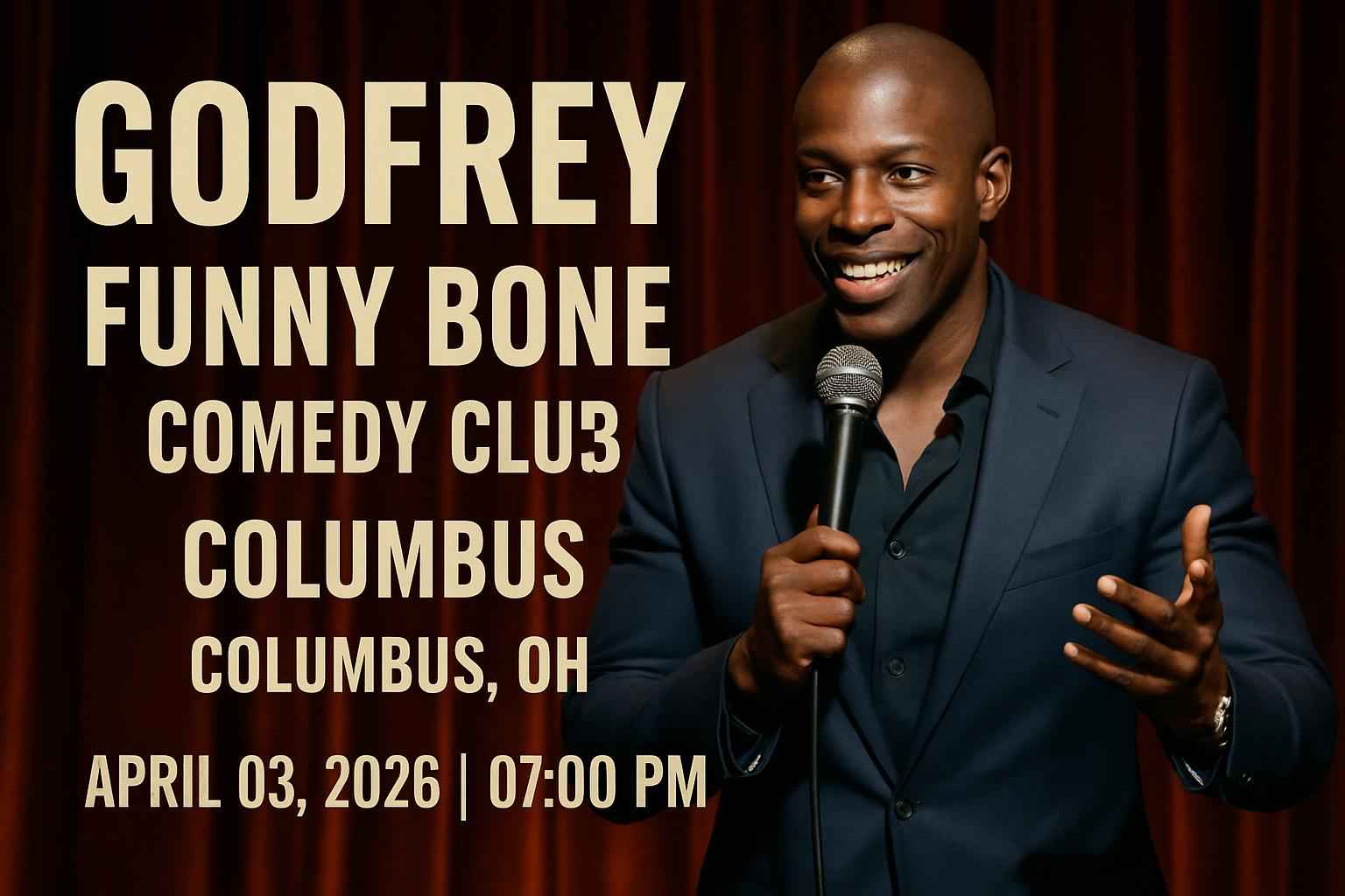 Experience an unforgettable night with Godfrey at Funny Bone Comedy Club Columbus on April 3 2026 at 7 PM. As one of the top comedy events in Columbus this spring Godfrey brings fresh stand-up routines and energy that have filled venues nationwide. Secure your seat for this limited show and enjoy an evening of laughter at one of Ohio’s premier live comedy venues.