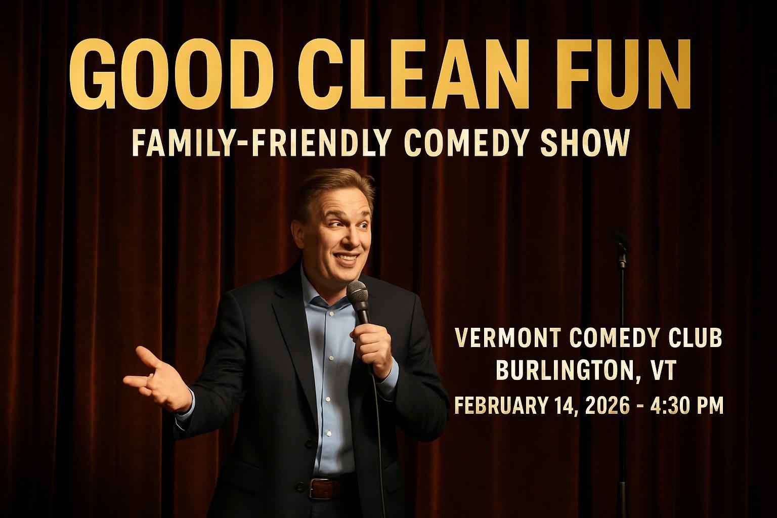 TLDR: Enjoy the Good Clean Fun – Family-Friendly Comedy Show at Vermont Comedy Club in Burlington, VT on Feb 14, 2026, at 4:30 PM. Featuring clean, all-ages humor and nationally recognized comedians, this event offers a safe, fun experience with free parking and nearby dining. Save on tickets with exclusive promo codes from RSVP Event Agency.