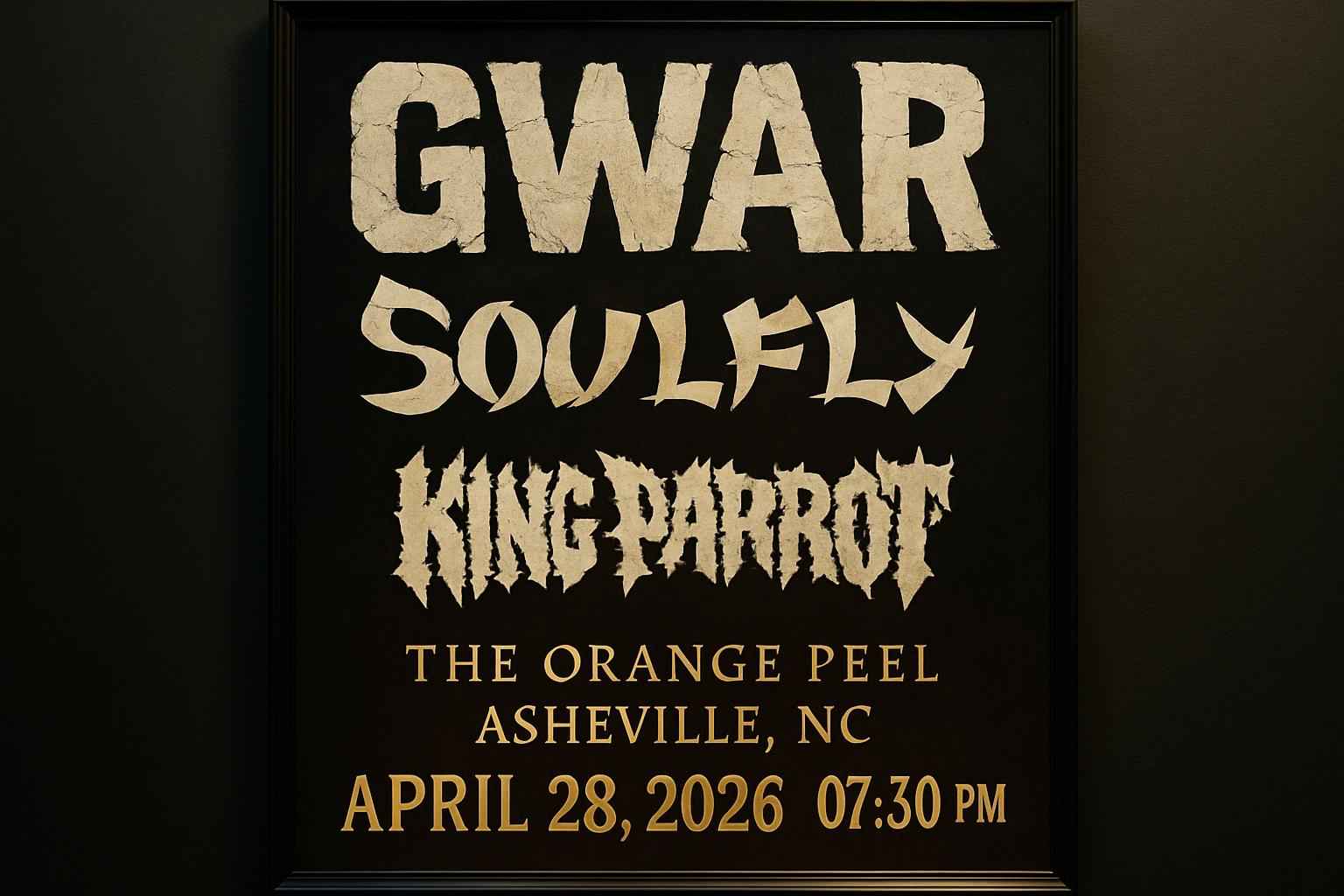 The GWAR Soulfly King Parrot lineup features hard-hitting performances and special collaborations exclusive to this tour stop. Expect a mix of classic tracks new singles and fan favorites for a dynamic setlist. Metal fans from Asheville and surrounding areas will not want to miss this night of intense music and theatrical stagecraft. Follow RSVP Event Agency for setlist updates and show highlights.