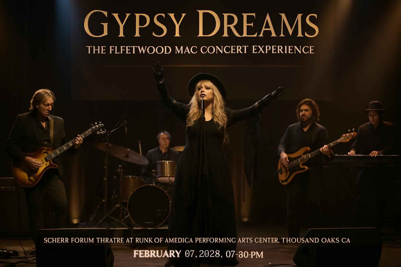 Gypsy Dreams presents a Fleetwood Mac tribute concert on February 7, 2026, at 7:30 PM in Thousand Oaks’ Scherr Forum Theatre. Enjoy classics like "Go Your Own Way" and "Rhiannon" in an intimate setting with excellent acoustics. Secure discounted tickets and coupon codes via RSVP Event Agency, with convenient parking and accessible seating available for a memorable live music experience.