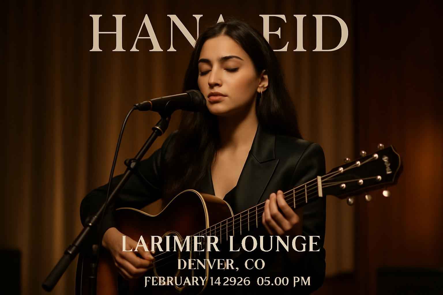 Hana Eid takes the stage at Larimer Lounge on February 14 2026 with doors opening at 5:00 PM.