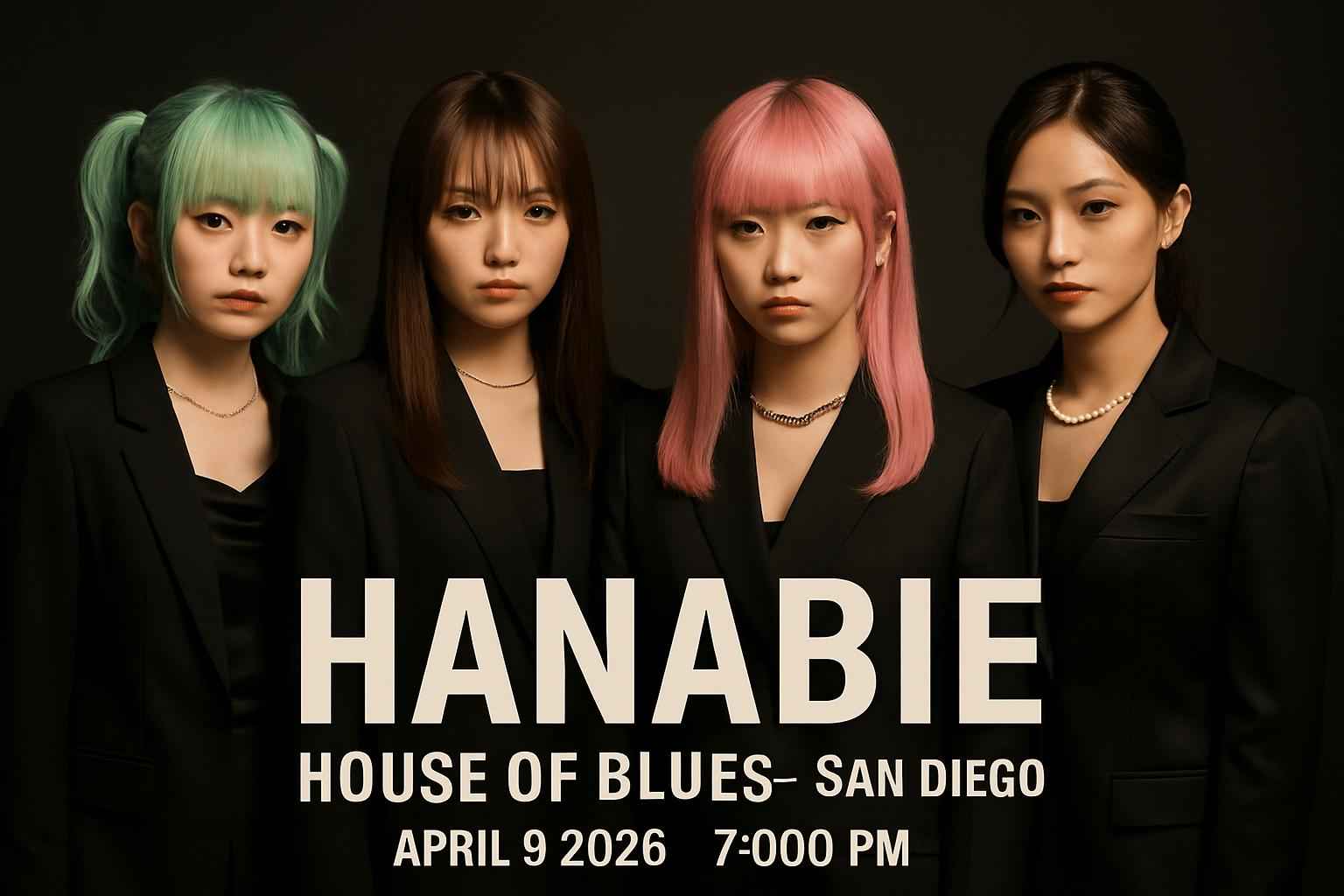 Hanabie brings its acclaimed fusion of metalcore J-pop and modern rock to House Of Blues San Diego for one night only. Doors open at 6 PM and the show starts at 7 PM. The venue is located at 1055 Fifth Avenue in downtown San Diego CA near the Gaslamp Quarter. Fans searching for Hanabie concert tickets in San Diego can access verified ticketing partners and local ticket outlets for fast entry and reliable service.
