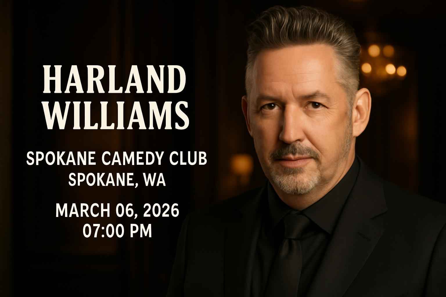 Doors open at 7 PM on March 06 2026 for Harland Williams at Spokane Comedy Club in Spokane WA.