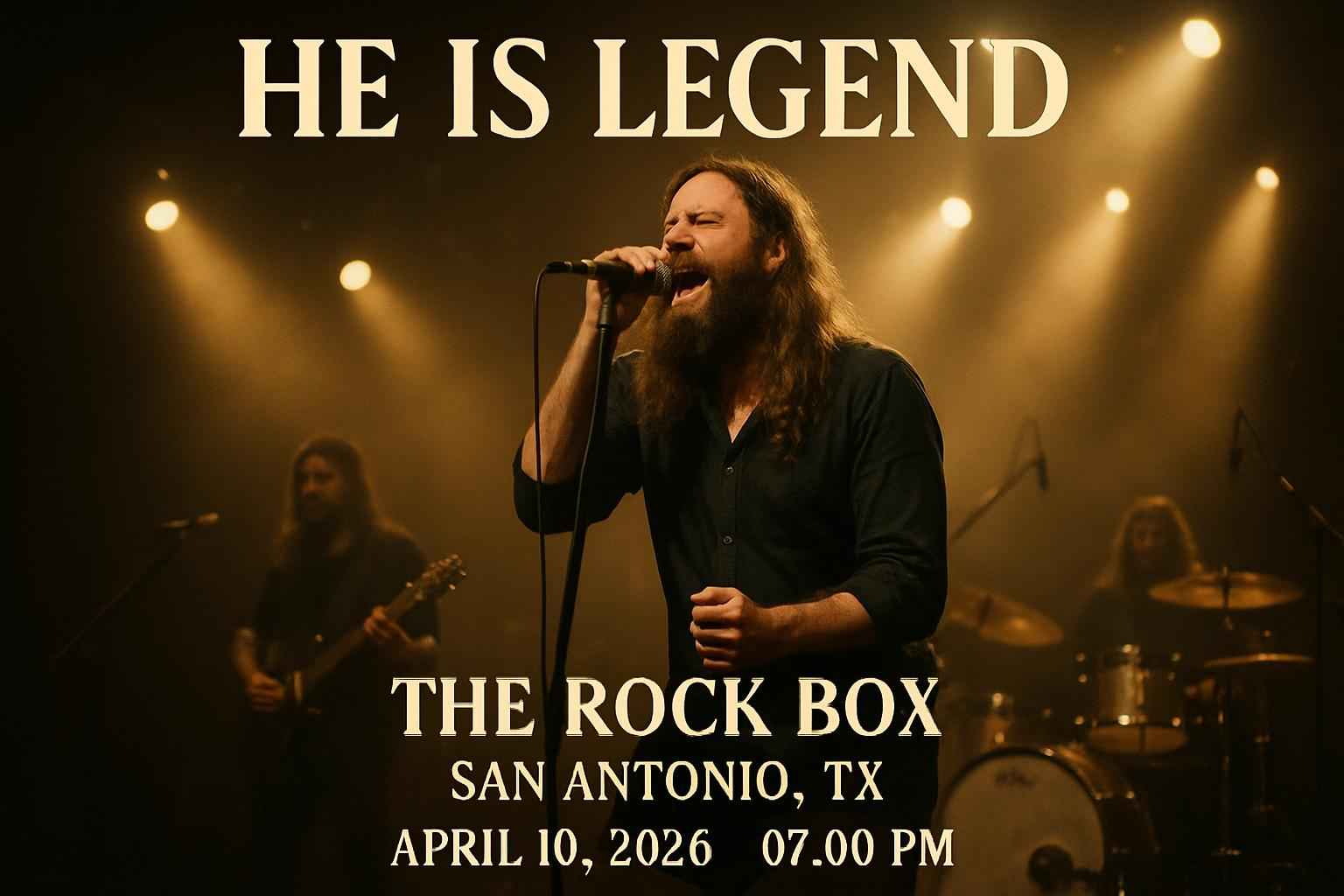 He is Legend takes the stage at The Rock Box located at 1223 E Houston St San Antonio TX 78205. Doors open at 7 PM on April 10 2026. Expect a high-energy live performance and a setlist featuring top tracks and fan favorites. The Rock Box is a premier San Antonio rock venue known for its sound quality and local music scene. Plan your visit early for parking and nearby dining options.