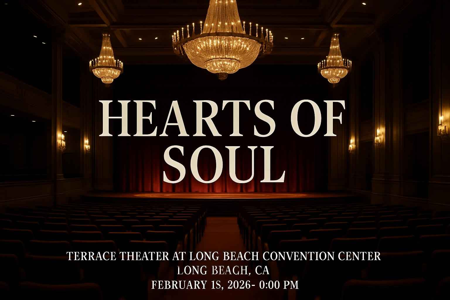 Hearts Of Soul is scheduled for February 15 2026 at 0600 PM at the Terrace Theater Long Beach Convention Center.