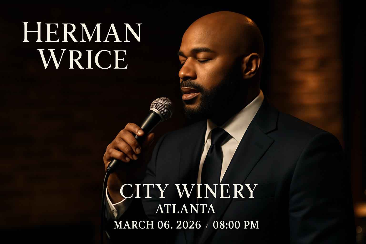 Experience the acclaimed Herman Wrice live at City Winery in Atlanta GA on March 06 2026 at 8:00 PM. Secure your seats through RSVP Event Agency and access the best promo codes to maximize your event savings. This highly anticipated performance draws fans from across Georgia looking for exclusive discounts and insider event details. Find everything you need for a seamless night out in Atlanta with our trusted service.