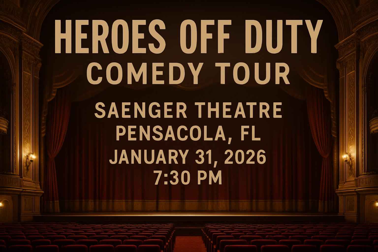 TLDR: Experience the Heroes Off Duty Comedy Tour at Saenger Theatre, Pensacola on January 31, 2026, 7:30 PM, featuring comedians from first responder backgrounds. Get exclusive discounts and early access to tickets via RSVP Event Agency promo codes. Enjoy reserved seating, accessible parking, and group rates for a fun, family-friendly comedy night downtown.