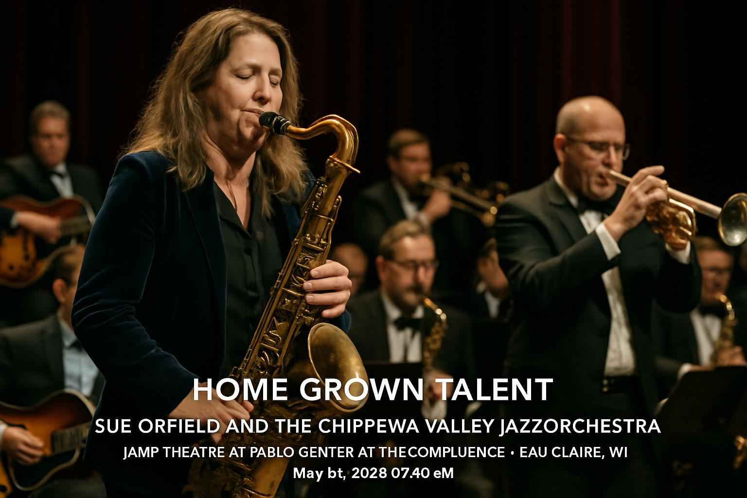 Home Grown Talent Sue Orfield and The Chippewa Valley Jazz Orchestra will perform live on May 01 2026 at 7:30 PM at Jamf Theatre At Pablo Center at the Confluence located in downtown Eau Claire WI. This local event brings together top regional musicians for an evening of jazz standards and original works. Find secure ticket options and stay updated on ticket availability by visiting RSVP Event Agency.