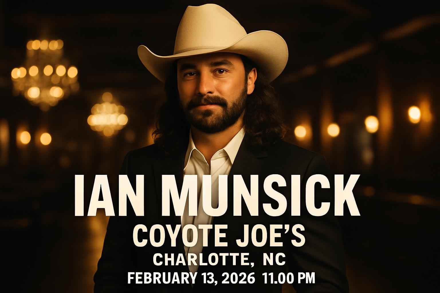 Experience the electrifying Ian Munsick live at Coyote Joes in Charlotte NC on February 13 2026 at 11 PM. Discover the top coupon codes and exclusive ticket discounts from RSVP Event Agency for this highly anticipated country music event. Secure best pricing and local deals for Ian Munsick Coyote Joes NC now.