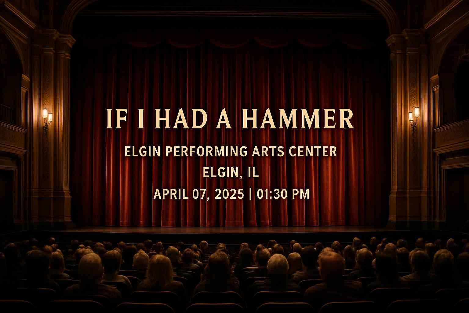 If I Had a Hammer delivers a dynamic live performance at the Elgin Performing Arts Center located at 164 Division St Elgin IL. Doors open at 1245 PM for a 0130 PM curtain. This event brings together local theater fans and visitors searching for a memorable cultural experience near Chicago. Enjoy exceptional acoustics comfortable seating and a welcoming atmosphere in downtown Elgin IL.