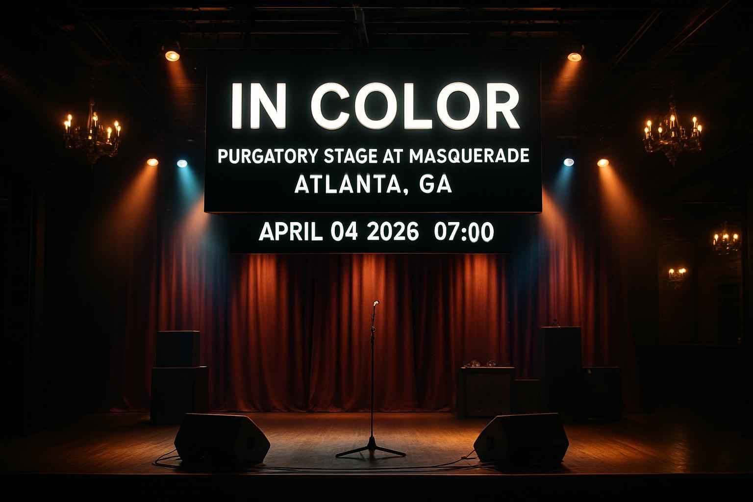 Join fans at Masquerade – GA for In Color on April 4, 2026. The Purgatory Stage in Atlanta delivers an electric venue for live music, top acoustics, and an intimate concert vibe. Doors open at 7:00 PM, making this a must-attend Atlanta event for those searching for unforgettable experiences and exclusive ticket deals.