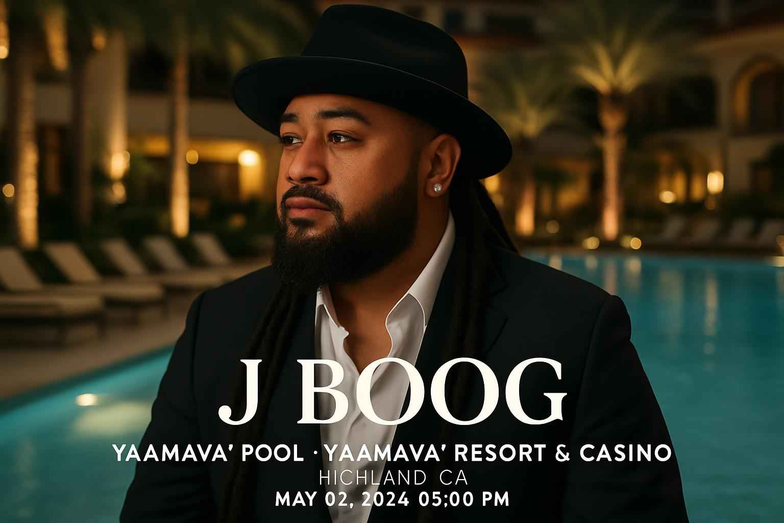 J Boog performs at 3 PM on May 2 2026 at the Yaamava Pool at Yaamava Resort and Casino.