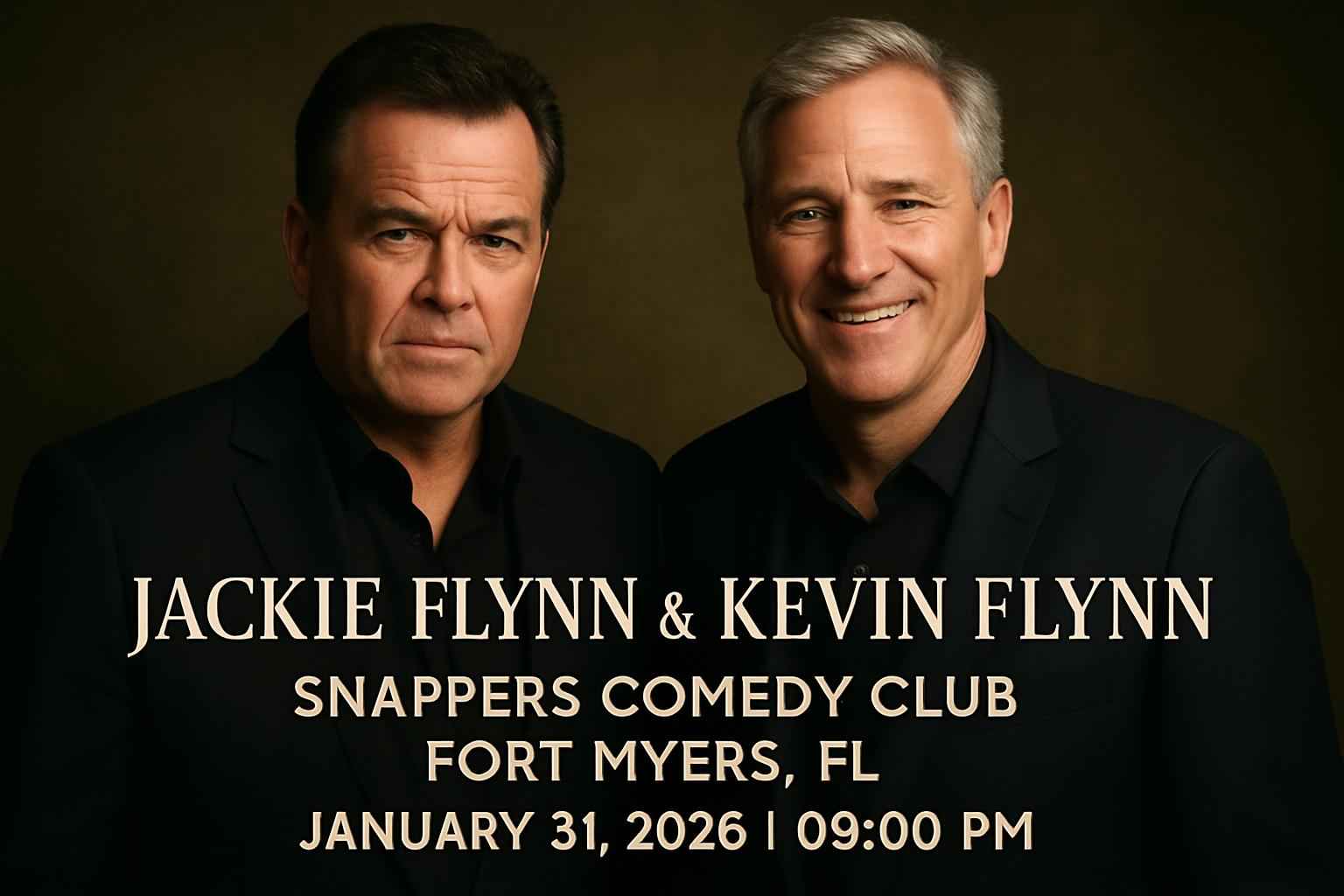 Experience an unforgettable night of laughter at Jackie Flynn and Kevin Flynn live at Snappers Comedy Club in Fort Myers FL on January 31 2026 at 9 PM. Secure your seats for this highly anticipated comedy show featuring two of Americas top stand-up comedians. Find the latest Jackie Flynn and Kevin Flynn Snappers Comedy Club promo codes and exclusive offers from RSVP Event Agency to save on your event tickets today.
