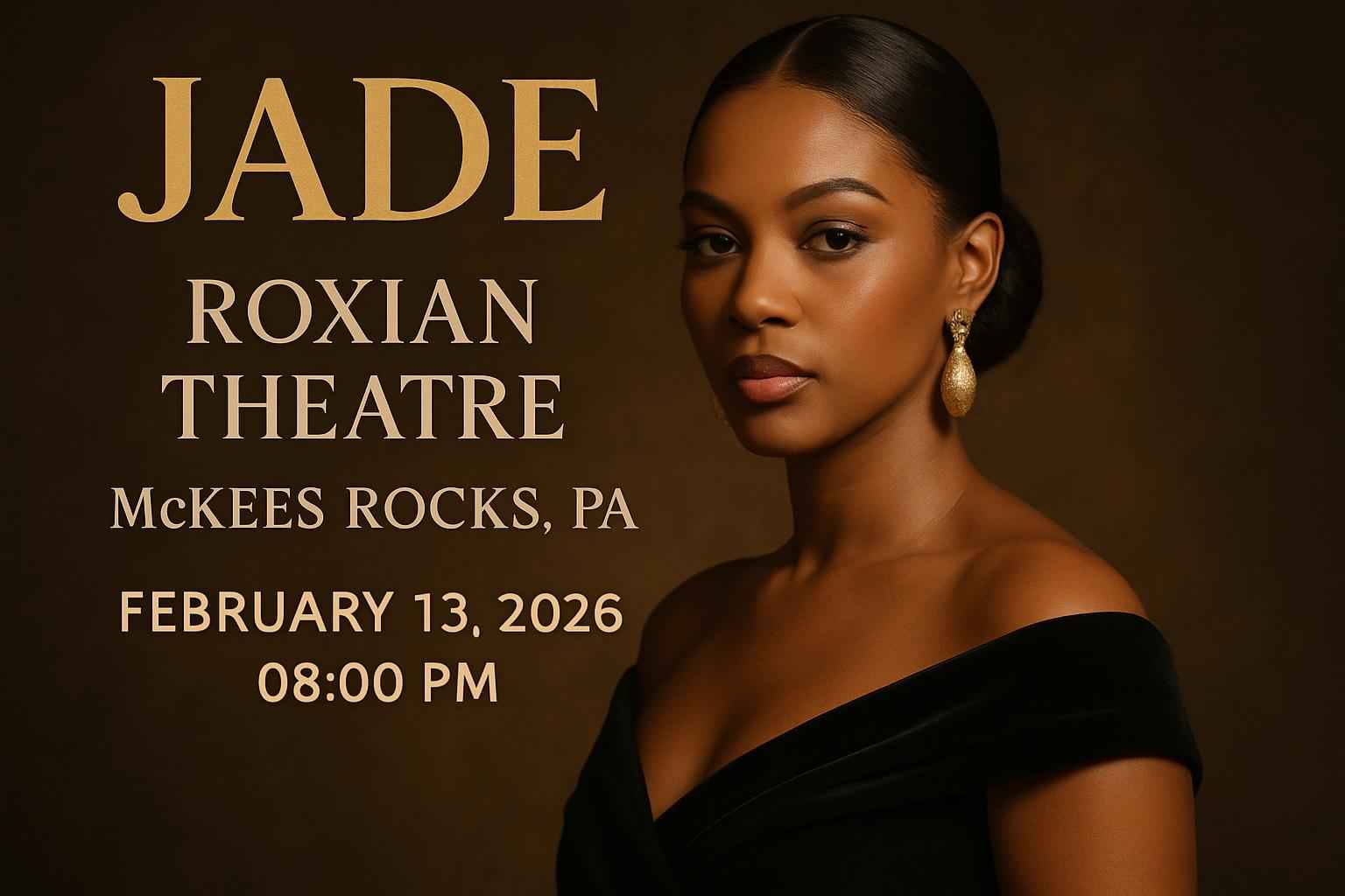 Experience JADE live at Roxian Theatre, McKees Rocks, PA on February 13, 2026, at 8 PM. Doors open at 7 PM with advanced acoustics and easy Pittsburgh access. Secure exclusive discount tickets and verified promo codes only via RSVP Event Agency. Arrive early, enjoy local dining, and prepare for an unforgettable night of music and community.
