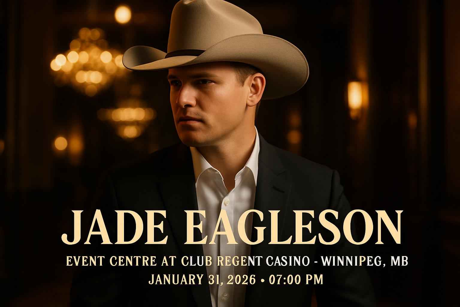 Jade Eagleson brings his award-winning country hits to the heart of Winnipeg on January 31 2026. The Event Centre At Club Regent Casino offers premier sound and seating for an unforgettable night. Fans can expect chart-topping singles and new music in a high-energy setting. Secure your seats with a Winnipeg concert coupon code now.