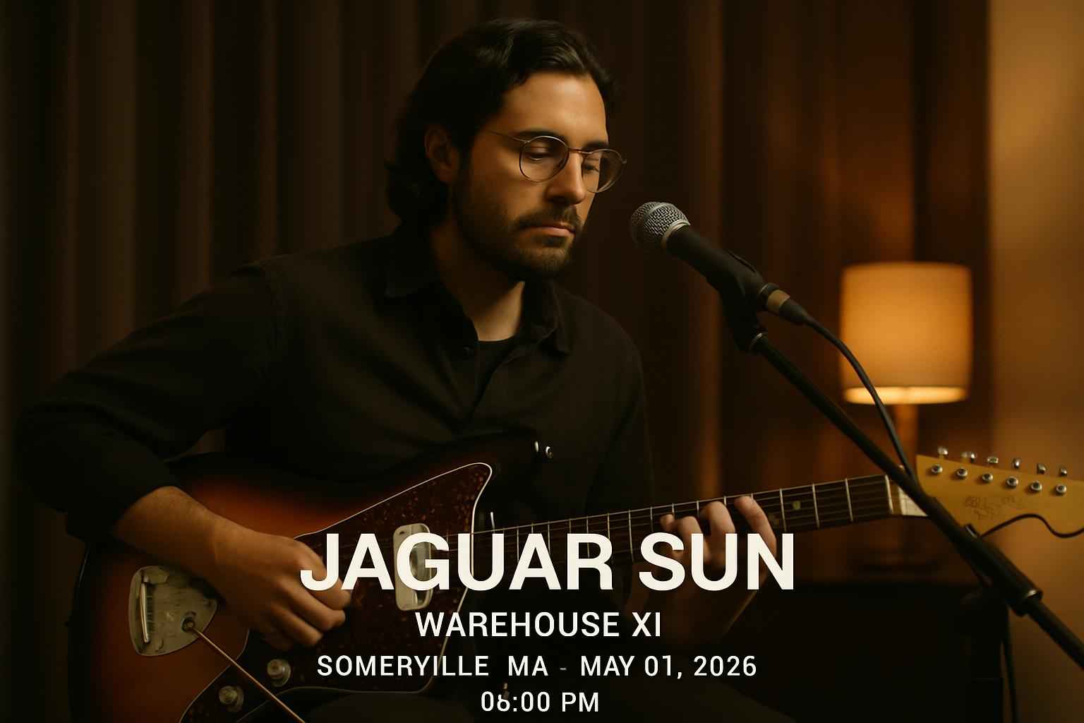 Jaguar Sun brings indie rock and dream pop to Warehouse XI in Somerville on Friday May 01 2026. The show starts at 8 PM and doors open at 7 PM. Fans can expect a setlist featuring new releases and top tracks in one of Somervilles most popular music venues. Warehouse XI is located in Union Square with easy access to public transportation and local parking. Early arrival is recommended for the best seating options.