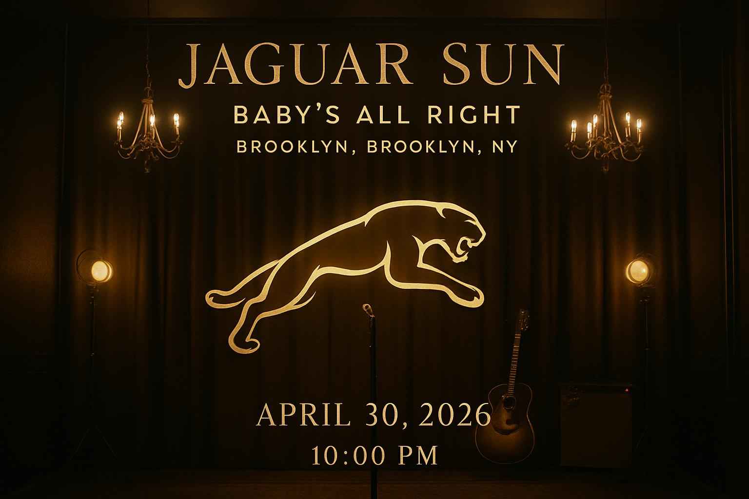 Jaguar Sun takes the stage at 10 PM on April 30 2026 at Baby’s All Right Brooklyn NY.