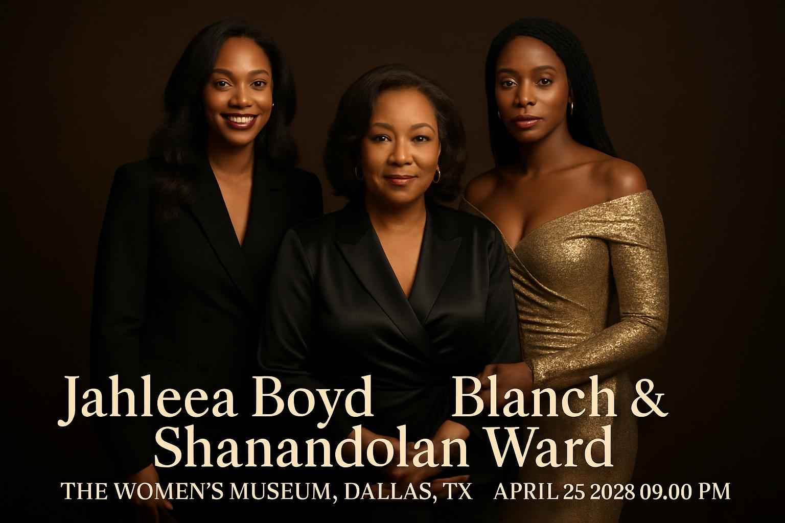 The Womens Museum in Dallas TX will host Jahleea Boyd Blanch and Shanandolan Ward on April 24 2026 at 900 PM This special event celebrates influential voices in womens history and culture drawing crowds from across North Texas Secure verified tickets and learn about VIP upgrades and event amenities for a premium experience in Dallas Find directions parking tips and accessibility info for The Womens Museum