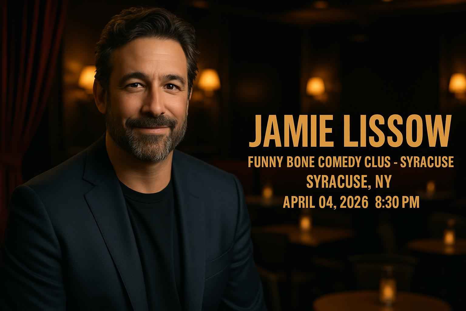 Jamie Lissow returns to Syracuse for a one-night performance at Funny Bone Comedy Club. Doors open early for seating and the show starts at 830 PM on April 04 2026. Funny Bone is centrally located in Destiny USA making it easy for Syracuse comedy fans to attend. Secure your spot now and use valid promo codes for extra savings on tickets.