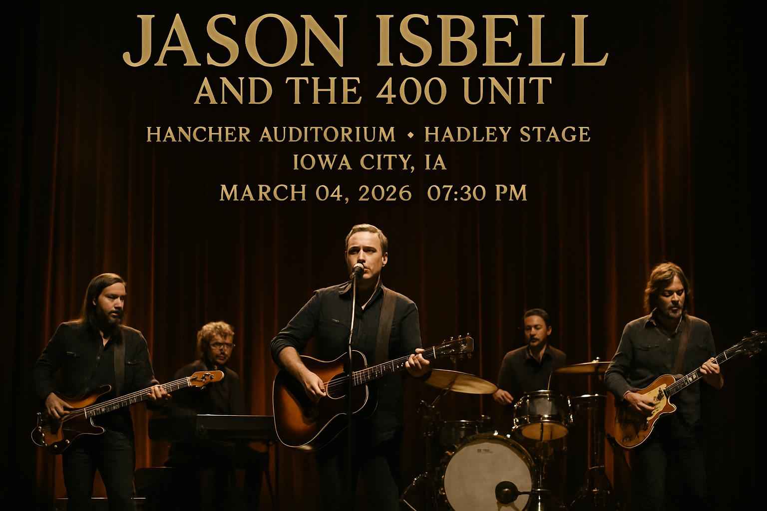 Jason Isbell and the 400 Unit perform live at Hancher Auditorium – Hadley Stage in Iowa City on March 4, 2026, at 7:30 PM. RSVP Event Agency offers verified promo codes for discounted tickets, including VIP options. Arrive early for parking and seating. Nearby hotels and restaurants enhance your concert experience. Secure tickets now for this exclusive Americana rock event.