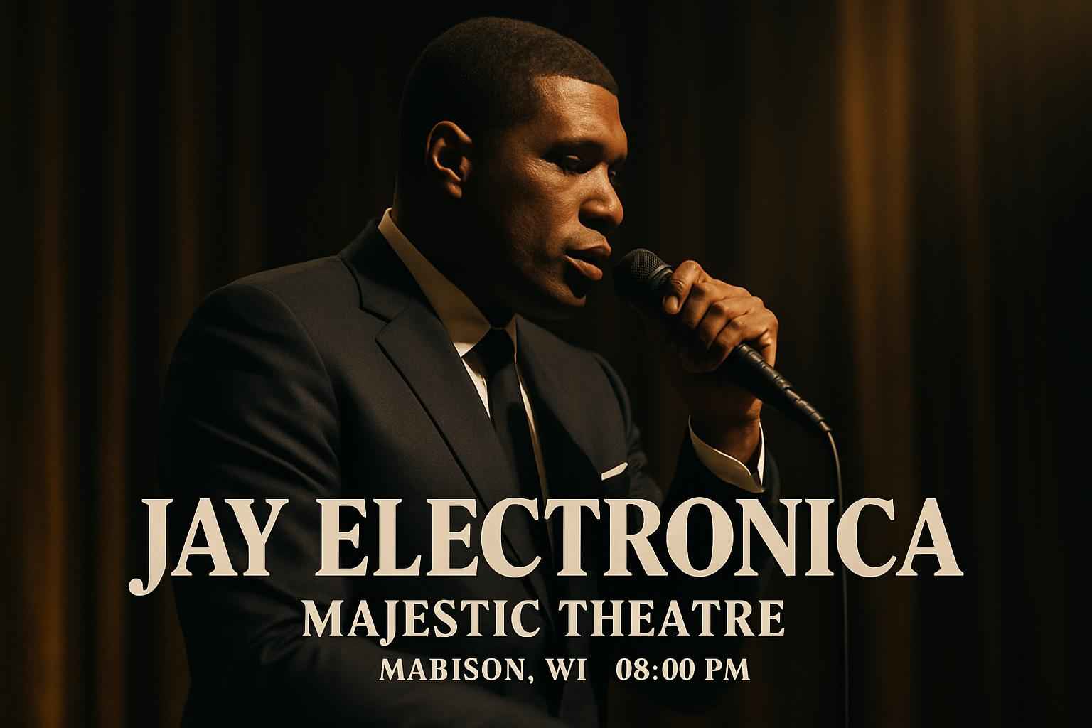 Jay Electronica brings his acclaimed lyricism to Majestic Theatre Madison for a one-night-only performance. Doors open at 7:00 PM with the main show starting at 8:00 PM. Located in downtown Madison WI the Majestic Theatre is renowned for intimate concerts and top-tier sound. This April concert is expected to sell out fast as fans search for last-minute tickets and special promo codes.
