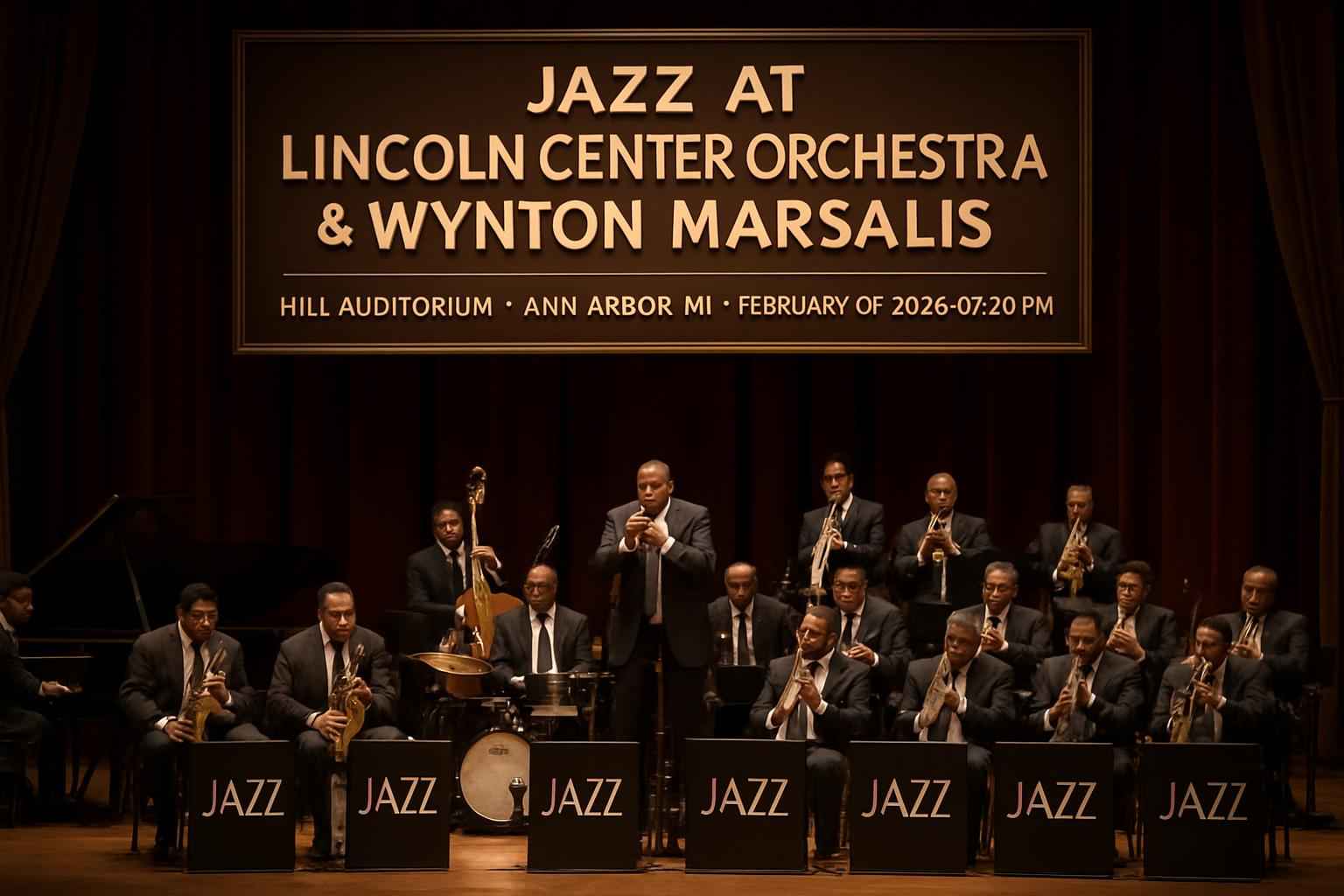 Experience the legendary Jazz at Lincoln Center Orchestra with Wynton Marsalis at Hill Auditorium in Ann Arbor MI on February 07 2026 at 0730 PM. This world-renowned jazz ensemble brings masterful musicianship and iconic jazz standards to the heart of downtown Ann Arbor. Secure your tickets for an unforgettable night of live jazz featuring Grammy-winning trumpeter Wynton Marsalis and some of the best jazz artists in the world.