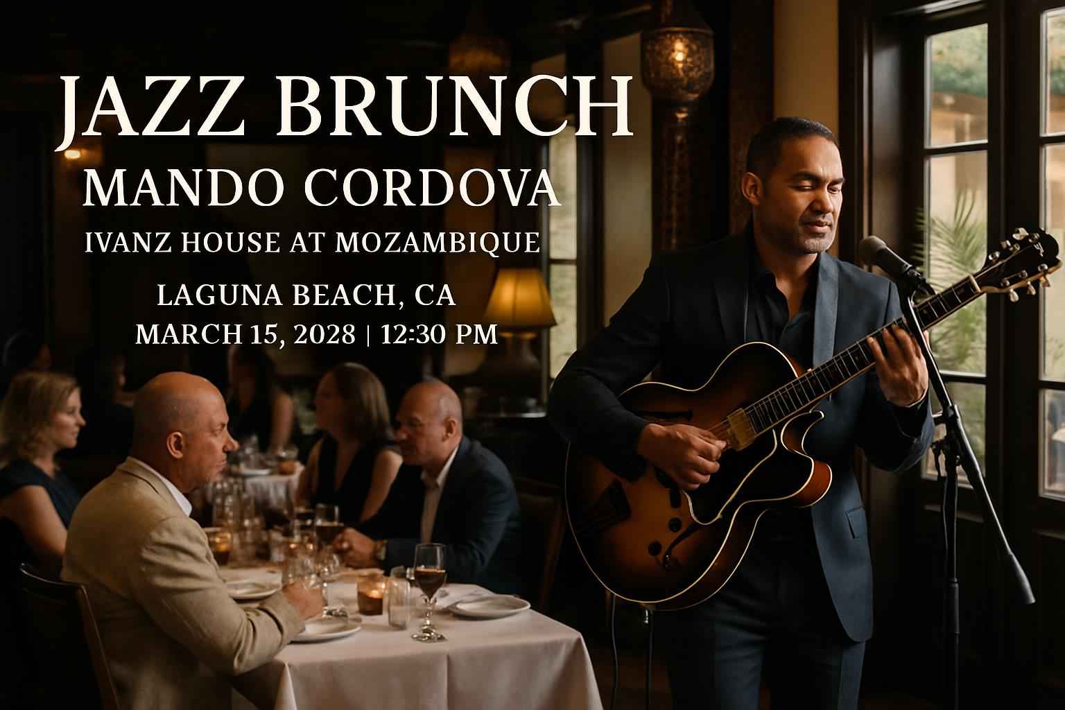 Jazz Brunch Mando Cordova Ivan-z House begins at 12:30 PM on March 15 2026 at Mozambique in Laguna Beach CA.