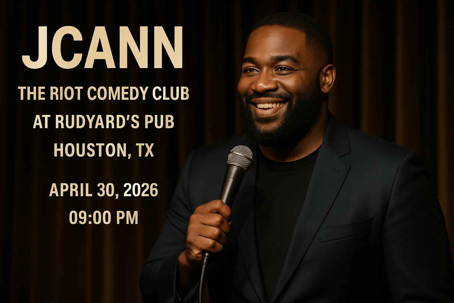 Experience an unforgettable night of laughter at JCann – The Riot Comedy Club at Rudyard’s Pub in Houston TX on April 30 2026 at 9:00 PM. This top-rated Houston comedy event showcases JCann’s signature stand-up style at the legendary Rudyard’s Pub known for its vibrant local entertainment scene and welcoming atmosphere. Secure your spot at one of the most anticipated April 2026 Houston comedy shows while unlocking exclusive savings with verified coupon codes from RSVP Event Agency.