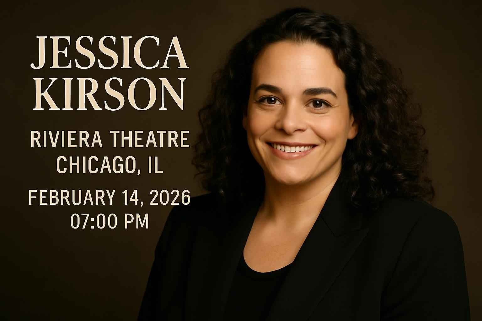 Jessica Kirson takes the stage at 7 PM on February 14 2026 at Riviera Theatre in Chicago IL.