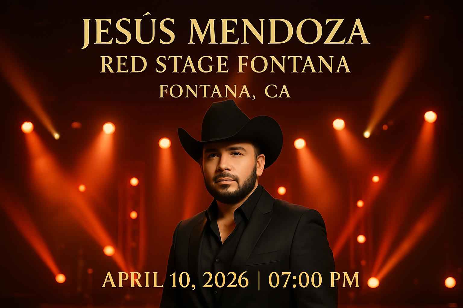 Jesus Mendoza Red Stage Fontana begins at 7:00 PM on April 10 2026. Arrive early for best seating and parking options.