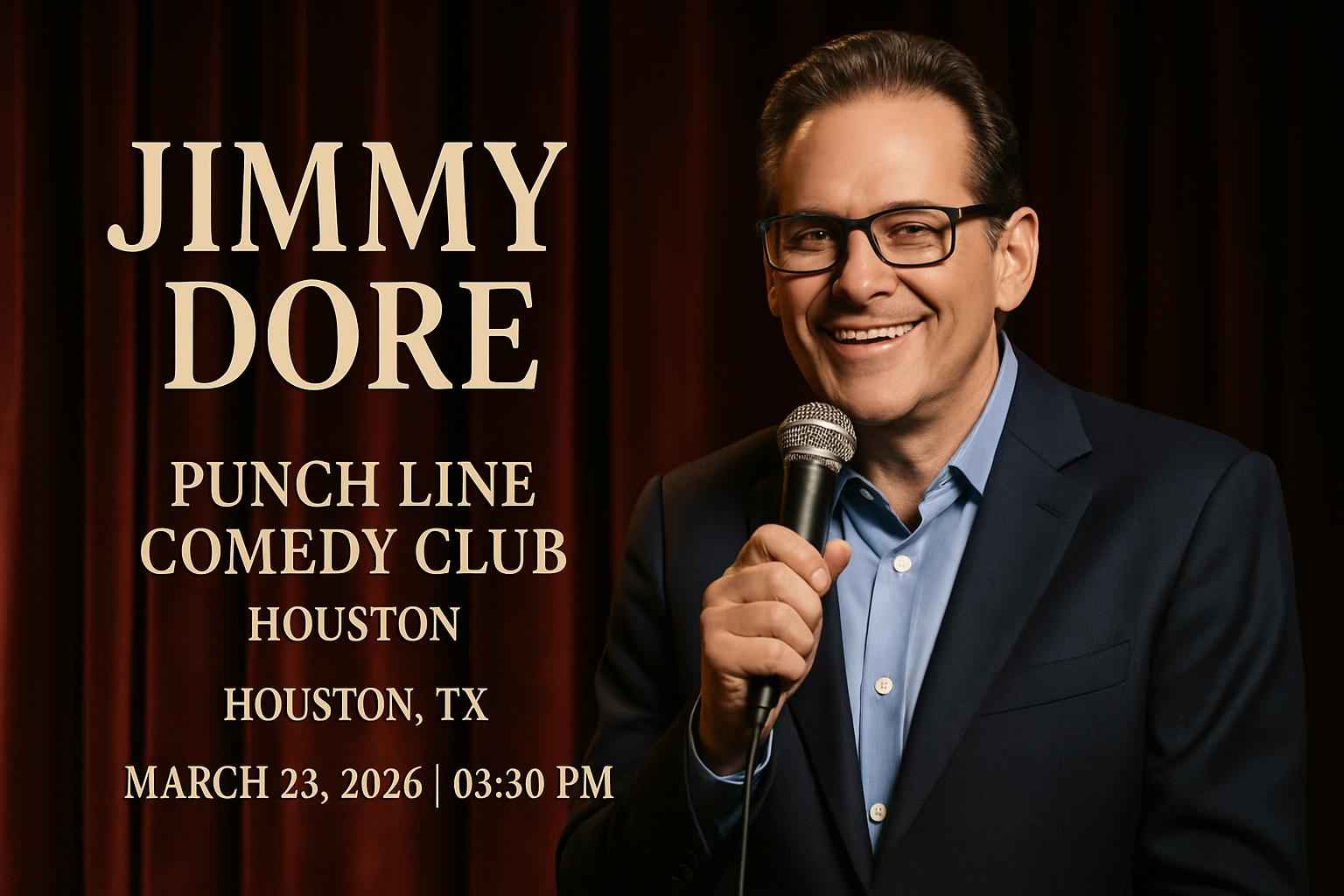 Experience Jimmy Dore live at the Punch Line Comedy Club in Houston TX on March 28 2026 at 0330 PM. This comedy event promises laughs and sharp political satire from one of Americas top stand-up comedians. Secure your seat today and use exclusive coupon codes from RSVP Event Agency to save on your tickets. This is Houstons premier comedy event for fans searching for local comedy shows Jimmy Dore tickets and Houston event discounts.