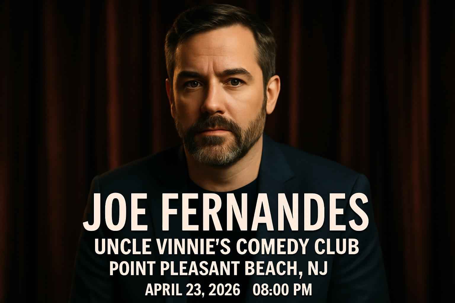Joe Fernandes brings a fresh comedy experience to Uncle Vinnies Comedy Club located at 518 Arnold Ave Point Pleasant Beach NJ. Doors open at 7 PM and the show starts at 8 PM. Enjoy high-energy entertainment from a national touring comedian in an intimate local setting. Free parking and easy access to the boardwalk make it the perfect night out in Ocean County.