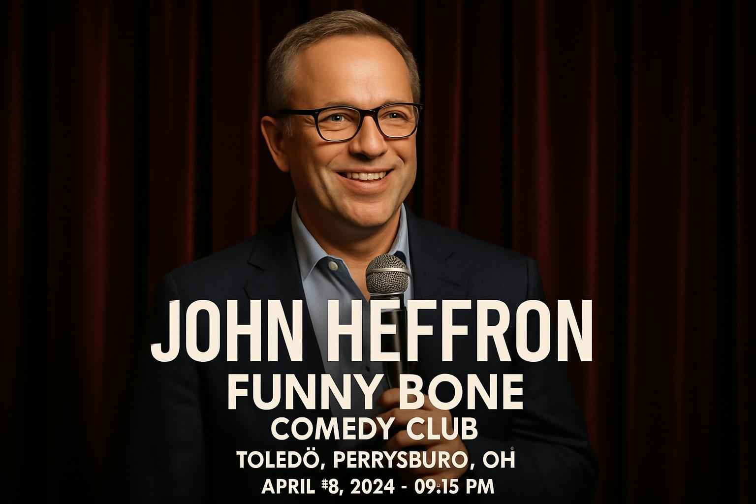 Last-minute tickets for John Heffron at Funny Bone Comedy Club Toledo are available with exclusive promo codes from RSVP Event Agency while supplies last.
