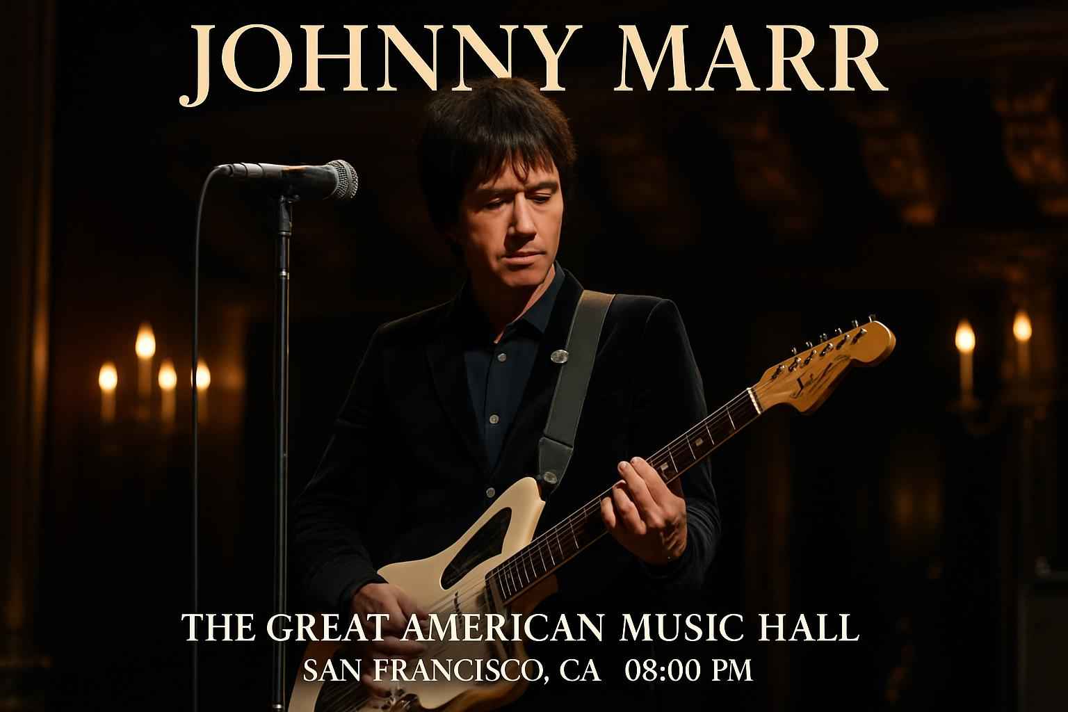 Johnny Marr brings his acclaimed live performance to The Great American Music Hall in San Francisco on March 24 2026 at 8 PM. This iconic venue offers historic ambiance and superior acoustics for an unforgettable concert experience. Fans searching for Johnny Marr tickets in San Francisco often choose this location for its intimate setting and central city access. Secure your spot for this highly anticipated event and enjoy an evening of legendary guitar-driven sound.