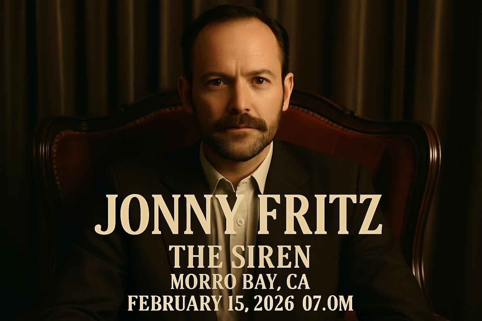 The Jonny Fritz concert begins at 7 PM on February 15 2026 at The Siren in Morro Bay CA.